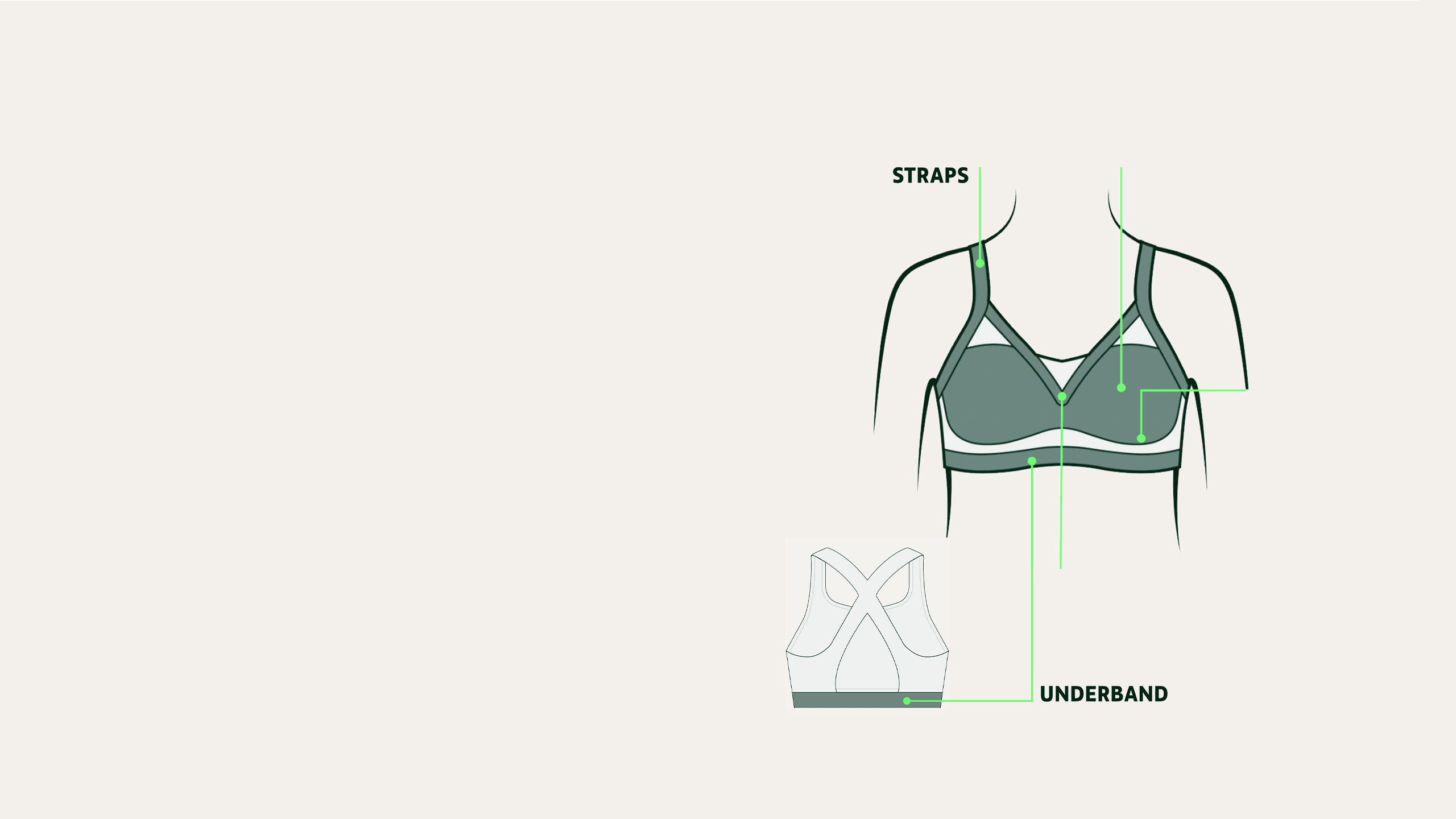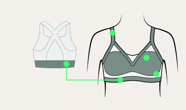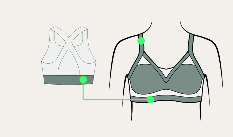 Not all sports bras have underwire, but if they do, the wire should follow the natural crease of the breast and not rest on, or dig into, any of the breast tissue.