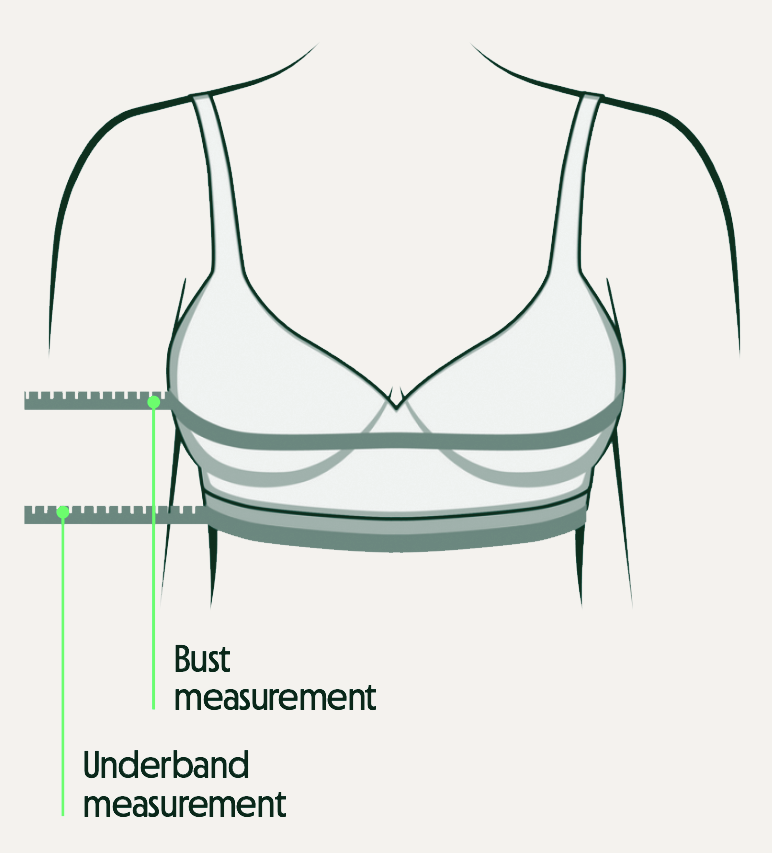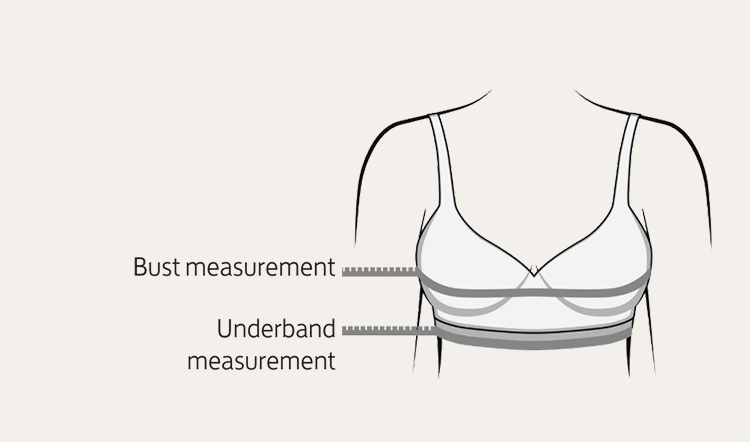 - Subtract the underband measurement from bust measurement. Use the chart below to convert that difference (inches) into your cup size